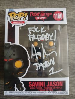 Autographed Funko Pop! Friday the 13th: The Game Savini Jason Vinyl Figure #1160. Beckett Authentication Certification Verification