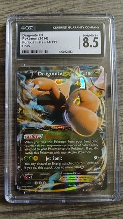 2014 Pokémon XY Furious Fists Dragonite EX #74, certified by CGC with a grade of 8.5 (NM/MINT+).$200Edmond, OK