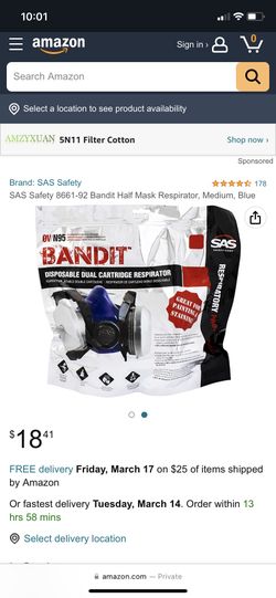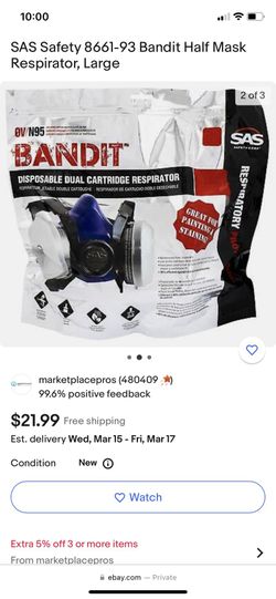 SAS Safety 8661 92 Bandit Half Mask Respirator, Medium$10San Bernardino, CA