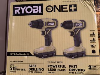 RYOBI One+ 18v 2-tool Combo Kit Drills 1/2" DRILL/DRIVER And 1/4" IMPACT DRIVER$100Naugatuck, CT