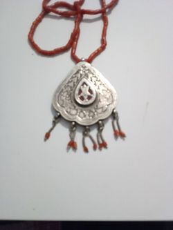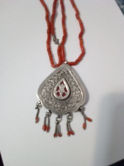 Afghan Turkman Silver &Coral Pendant Necklace .$123San Francisco, CA