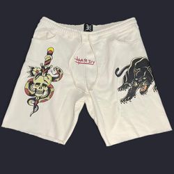 New XL Ed Hardy men’s ivory cotton shorts with skull, panther graphics & logo$45St. Augustine, FL