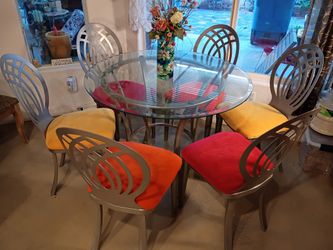 Ethan Allen "Radius Collection" Dining Set. 6 Chairs & Glass Top Table. 42" wide, 31" tall $325Las Vegas, NV