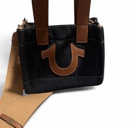 Vintage True Religion black denim crossbody bag with brown leather strap #denimbag$20Anaheim, CA