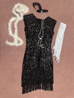 New medium black sequin fringe flapper evening dress costume accessories 20s$40Mount Baldy, CA