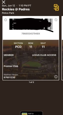 Two Tickets To Padres Game 6/12$100San Diego, CA
