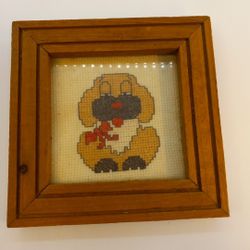 1990s Vintage Completed Cross Stitch Dog Frame Mat 5x5in"$21Garner, NC