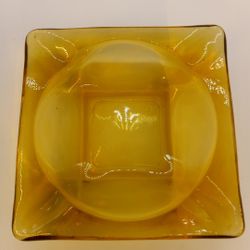Vintage Amber Glass Cigar Ashtray Square Mid Century Modern Heavy .64LB 4.5In$22Garner, NC