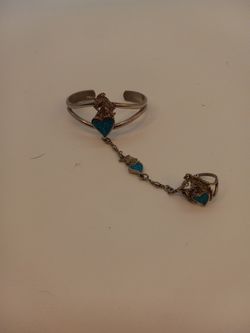 VTG Ege 90 Silver Tone CrushTurquoise Unicorn Heart Slave Bracelet Cuff Ring $56Garner, NC