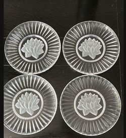 Elegant Clear Glass Lotus Plates Set, set of four, lotus flower etched from back$18San Mateo, CA