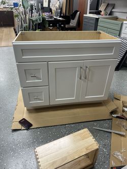 36-inch oak color vanity. Drawers and sink can be configured on either the left or right side. Dimensions: 22” depth × 36” height.$445Whittier, CA