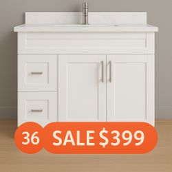 36-inch vanity with adjustable drawer and sink position (left or right). Solid wood cabinet with countertop — special price.$399Whittier, CA