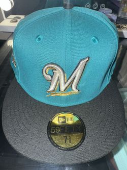 Milwaukee Brewers Teal Black Silver Metallic Men's 59FIFTY Fitted Hat 7 3/8 NEW$50Chelsea, MA