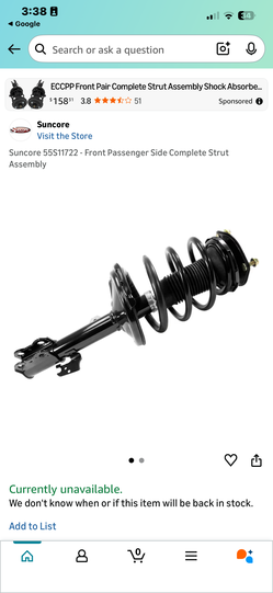 Suncore 55S11722 - Front Passenger Side Complete Strut Assembly$49Snellville, GA