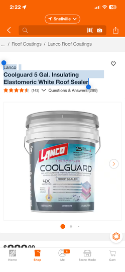 Lanco Coolguard 5 Gal. Insulating Elastomeric White Roof Sealer$99Snellville, GA