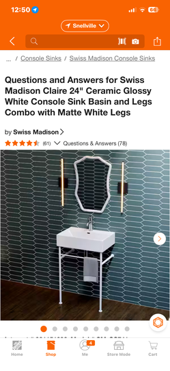 Questions and Answers for Swiss Madison Claire 24" Ceramic Glossy White Console Sink Basin and Legs Combo with Matte White Legs$99Snellville, GA