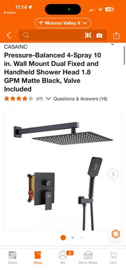 CASAINC Pressure-Balanced 4-Spray 10 in. Wall Mount Dual Fixed and Handheld Shower Head 1.8 GPM Matte Black, Valve Included$125Perris, CA