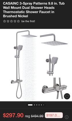 CASAINC 3-Spray Patterns 9.8 in. Tub Wall Mount Dual Shower Heads Thermostatic Shower Faucet in Brushed Nickel$150Perris, CA