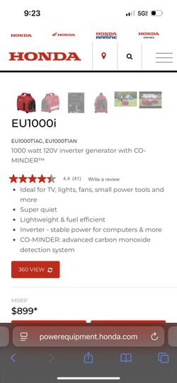 Honda 1000 watt 120V inverter generator with CO-MINDERâ„¢$500Chicago, IL