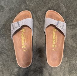 Birkenstock Madrid Birko-flor Silver Glitter Sandals, Size 38$75Troutdale, OR