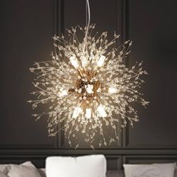 Gold Crystal Dandelion Chandelier | Starburst Crystal Ball Pendant Light$50Norcross, GA
