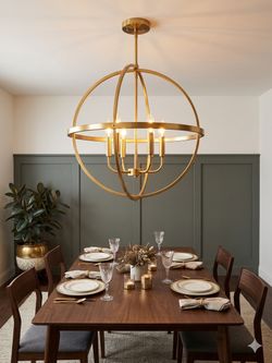 Brushed Gold Large Orb Chandelier | 4-Light Globe Cage Candelabra Pendant$50Norcross, GA