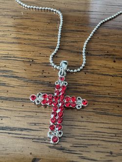 Red Rhinestone Cross Necklace And Chain$10Plainfield, IL