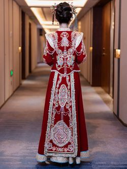 Heavy Craftsmanship Embellished Shoulder Blue-Trimmed Velvet Xiuhe Dress$350Covina, CA