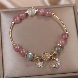 "Celestial Charm: Star & Moon Strawberry Crystal Bracelet"**$9Covina, CA