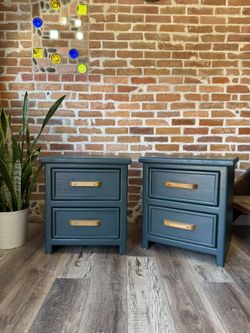 ✨Newly Refinished Rich Green And Teak Wood Nightstands - Delivery Included $395San Diego, CA