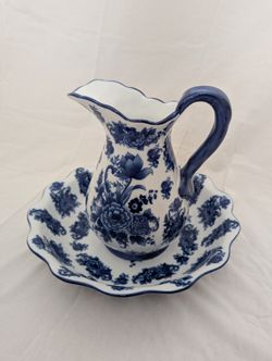 Vintage Pottery Pitcher & Wash Basin - Blue & White Floral Pattern $20Clermont, FL