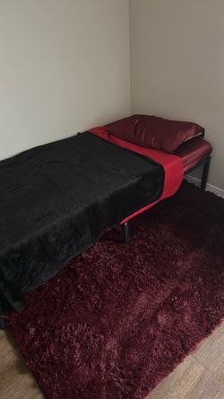 Metal twin bed frame With 6” Top Mattress And red satin Sheets$85Fort Smith, AR