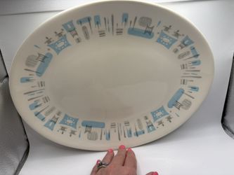 Vintage Atomic Oval Platter 13x10 | Mid Century Blue Gray Geometric Design$30Hollywood, FL