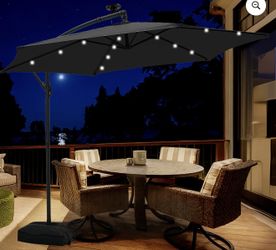 NEW in Unopend box 10FT Cantilever Patio Umbrella w/ Solar LED Lights & Base – Black$75Katy, TX