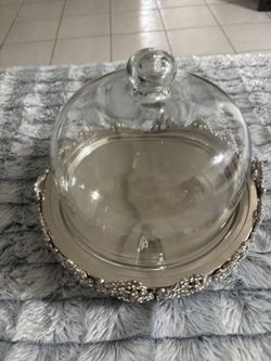 Nicole Miller silver cake stand with a glass dome$10Bakersfield, CA