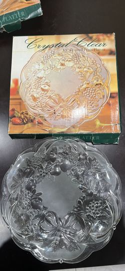Crystal Clear 15" Round Frosted Fruit Platter in Original Box Vintage Christmas$30Burbank, CA