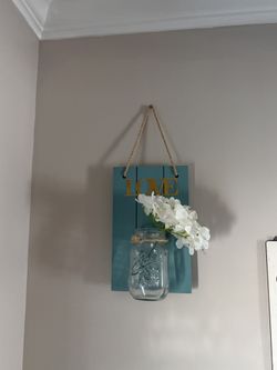 Set of 2 Rustic Hanging Mason Jar Wall Sconces – Teal Wood & Floral$30Coram, NY
