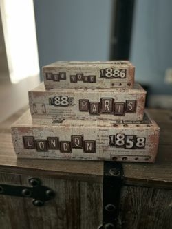 Set of 3 Vintage Decorative Storage Boxes – Paris, London, NY Theme$40Coram, NY
