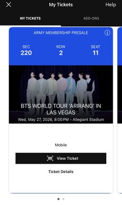 BTS Concert Tickets - Allegiant Stadium Las Vegas $490Diamond Bar, CA