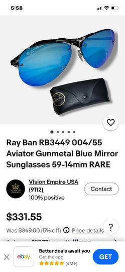 Ray-Ban rb3449 004/55 aviator gunmetal blue mirror sunglasses 59-14mm RARE$60San Jose, CA