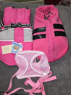 Pretty In Pink (2) doggie sweaters and(1) harness$15Houston, TX