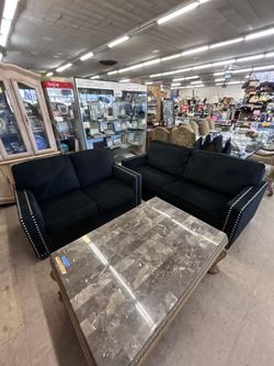 SALE Modern Black Velvet Sofa & Loveseat Set w/ Silver Studded Nailhead Trim$799San Bernardino, CA