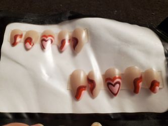 Cute Heart Red Pink Striped Wavy Press On Nail Set$15Orlando, FL