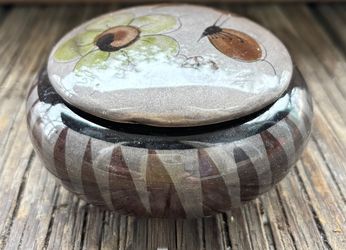 Vintage Painted Ceramic Jar with Lid, Gray with Floral Motif$12West Orange, NJ