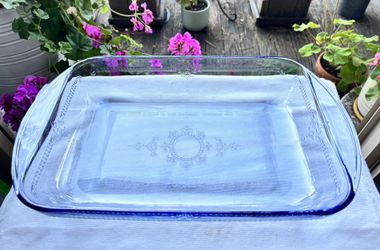 Vintage Anchor Hocking 3Qt Bake Dish, Blue Tint — Heritage Scroll, Excellent vintage condition$38West Orange, NJ