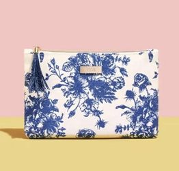 Blue & White Floral Canvas Cosmetic Case with Fringed Tassel, New/Never Used$14West Orange, NJ