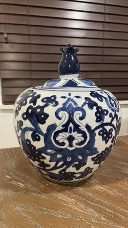 Chinese Chinoiserie Blue and White Ceramic Ginger Jar. 10” Tall$50Riverside, CA