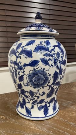 Chinese Chinoiserie Blue and White Ceramic Ginger Jar. 12 1/2” Tall.$90Riverside, CA