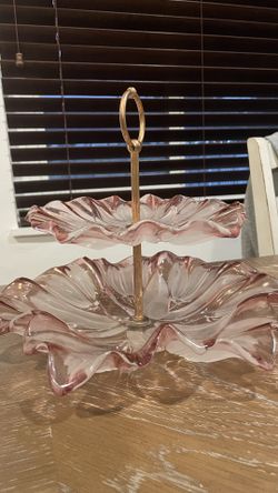 Vintage Mikasa Frosted Pink Tulip Glass Serving Appetizer Tray. 10” Tall$55Riverside, CA