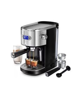 2-Cup Silver Stainless Steel All in 20-Bar Semi-Automatic Espresso Machine with Led Display and Steam Milk Foam $79Richardson, TX